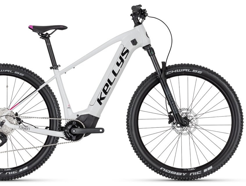 Dámsky horský elektrobicykel KELLYS TAYEN R50 P 29″ s ľahkým hliníkovým rámom prispôsobeným ženám, ktoré si bez problémov poradia aj s najťažším terénom. Originálny dizajn v spojení s kvalitným stredovým motorom PANASONIC GX Ultimate s výkonom 250 W napájaným batériou s kapacitou 20Ah a dojazdom až 150 km robia z tohto bicykla nezameniteľný model.