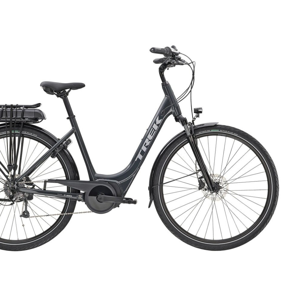 Ľahký hliníkový rám so zníženou geometriou, 8-rýchlostné hnacie ústrojenstvo Shimano a motor Bosch Active Line (250 W, 40 Nm), ktorý dokáže udržať rýchlosť až 25 km/h, ovládač Purion a batéria s kapacitou 300 Wh, 400 Wh alebo 500 Wh podľa vášho výberu. Okrem toho odpružená vidlica, hydraulické kotúčové brzdy, nastaviteľný predstavec kompatibilný so systémom Blendr, mimoriadne široké pneumatiky 50c pre stabilitu a trakciu, ergonomické gripy, blatníky, svetlá, zadný nosič kompatibilný so systémom MIK a zámok.