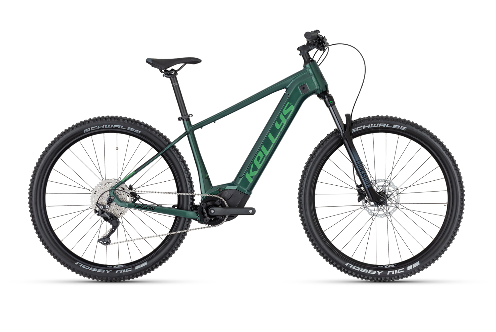 rám KELLYS TYGON R-series – advanced robotic welded 6-series aluminium alloy, integrated removable battery, 1.5“ tapered HT, 12×148 mm Boost thru axle / Made in EUmotor PANASONIC GX Ultimate, 90 Nm, 36 Vbaterie KELLYS Re-Charge V10 Li-ion internal removable 725 Wh / capacity 20 Ah, powered by BMZcyklopočítač PANASONIC Bluetooth® 5.0 navigation Side Color Displayvidlice ROCK SHOX 35 Silver TK (29) Boost, 120 mm, Solo Air / TurnKey / Maxle Stealth 15 mm thru axlekliky SAMOX (34T) – délka 170 mmměnič SHIMANO Deore M5120 (direct mount)řazení SHIMANO Deore SL-M4100-R Rapidfire Plus (I-Spec EV)počet převodů 10kazetové pastorky SHIMANO CS-M4100-10 (11-46T)řetěz KMC e10Tbrzdy SHIMANO MT200 Hydraulic Discbrzdové páky SHIMANO BL-MT200brzdové kotouče přední 180 mm / zadní 180 mmnáboje SHIMANO MT400-B Disc Center Lock nebo KT Disc (32 děr)ráfky KLS Valor 3 Disc 622×30 (32 děr)výplet kola stainless steel blackpláště SCHWALBE Nobby Nic Performance 60-622 (29×2.40) ADDIXhlavové složení FSA 1.5 semi-integratedpevná osa přední ROCK SHOX Maxle Stealth 15×110 mm / zadní NOVATEC 12×181 mmpředstavec KLS Active – diam 28.6 mm / bar bore 31.8 mm / 6° / délka 80 mmřídítka KLS Active RiseBar – diam 31.8 mm / rise 18 mm / šířka 720 mmrukojete KLS Poison OneLockonsedlovka KLS Active – diam 30.9 mm / délka 350 mmsedlo SELLE ROYAL Vivopedály plastvelikost rámu M / L / XL